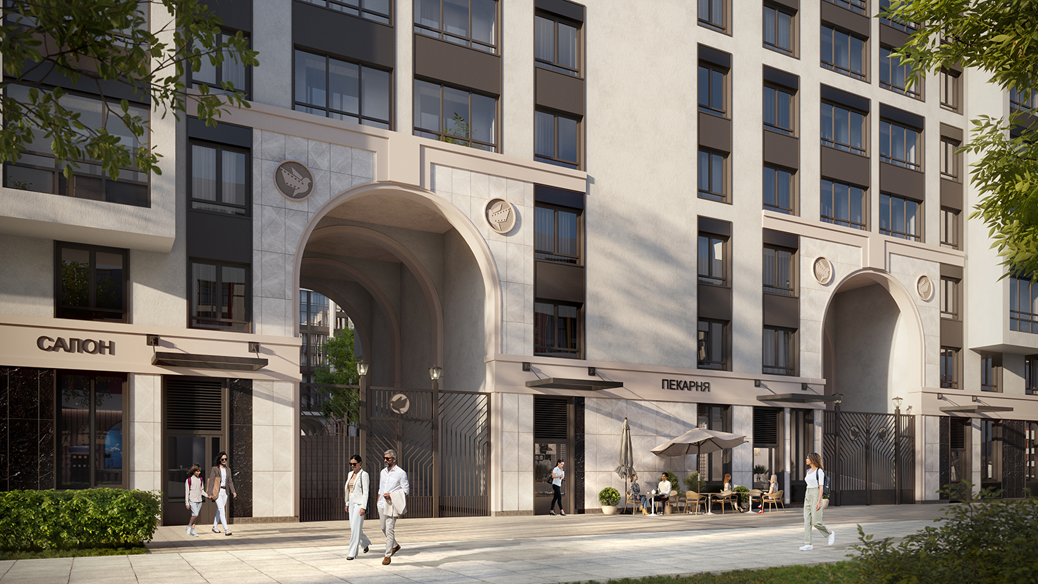 Проект состоит из трех очередей. В каждой из них — два корпуса и отапливаемый подземный паркинг, куда можно спуститься на лифте. Все дома девятиэтажные, что соответствует окружающей застройке. Фасады отделают в неоклассическом стиле — штукатуркой и керамогранитом теплых оттенков кофейного и серого.